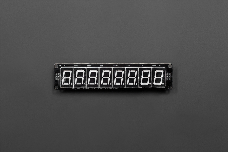 This is 8 digital bits serial LED display. It features a flick free display and 3-Wire interface which allows more than 2 modules can be serial linked. With our interface shield, this module can be plug and play.