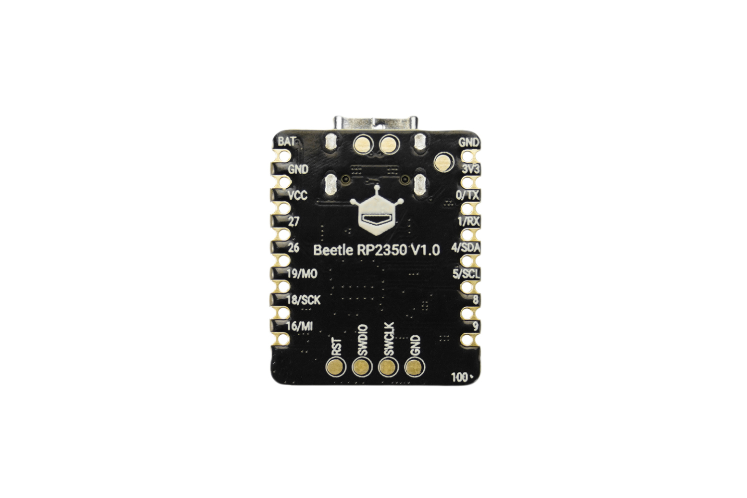 Designed for ease of use, the Beetle RP2350 supports programming in C/C++, MicroPython, and Arduino, enabling efficient development with familiar languages. Its single-sided component layout and half-hole design make it compatible with surface-mount production, facilitating large-scale integration into compact and professional designs.