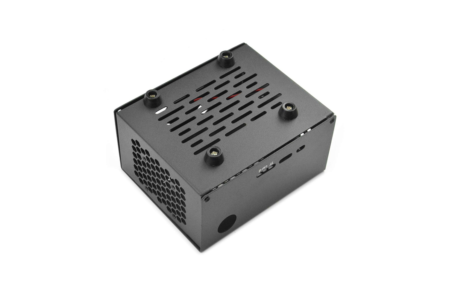 Honeycomb vents of the case reduce the heat generated by your device while it is performing neural network training or running machine vision programs. There are four anti-skid rubber pads on the bottom of the case to prevent skidding.
