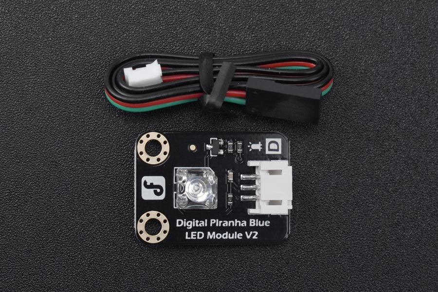 When the LED light module connected to Arduino, the digital pin (LOW on, HIGH off) is used to control it. The brightness of LED can be controller via PWM output.