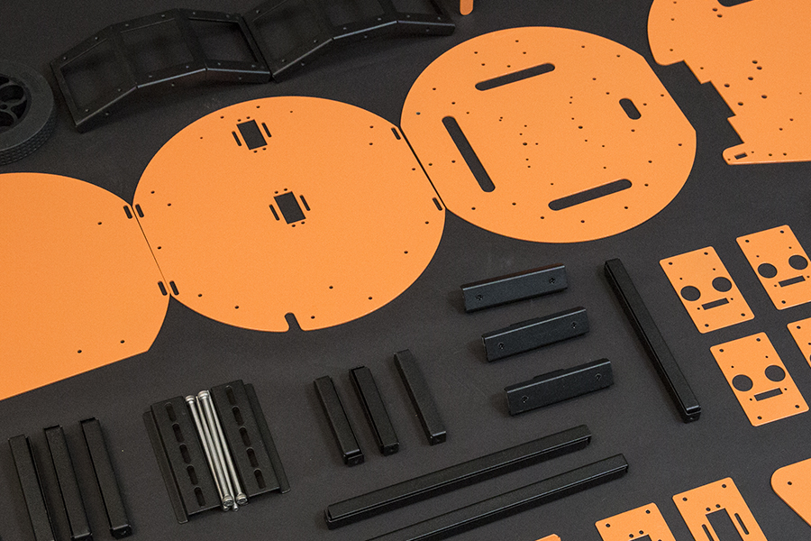 This HCR platform robot kit comes with 5 sharp distance sensors and a Romeo robotic microcontroller. You could select other accessories according to your requirements. Like: