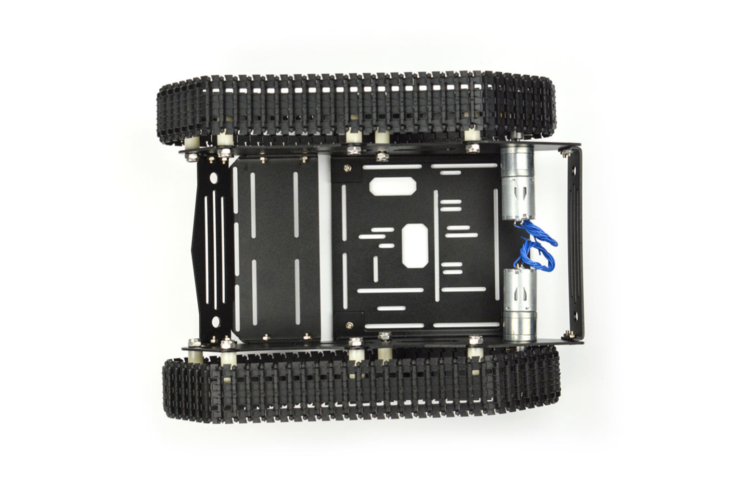 The track robot is made of engineering plastic that basically assured the good elasticity, excellent damping effect and large road grip of the product. What s more, it comes with two quality motors to provide high power and speed, which enables your DIY robot car to widely suit all kinds of road surfaces.