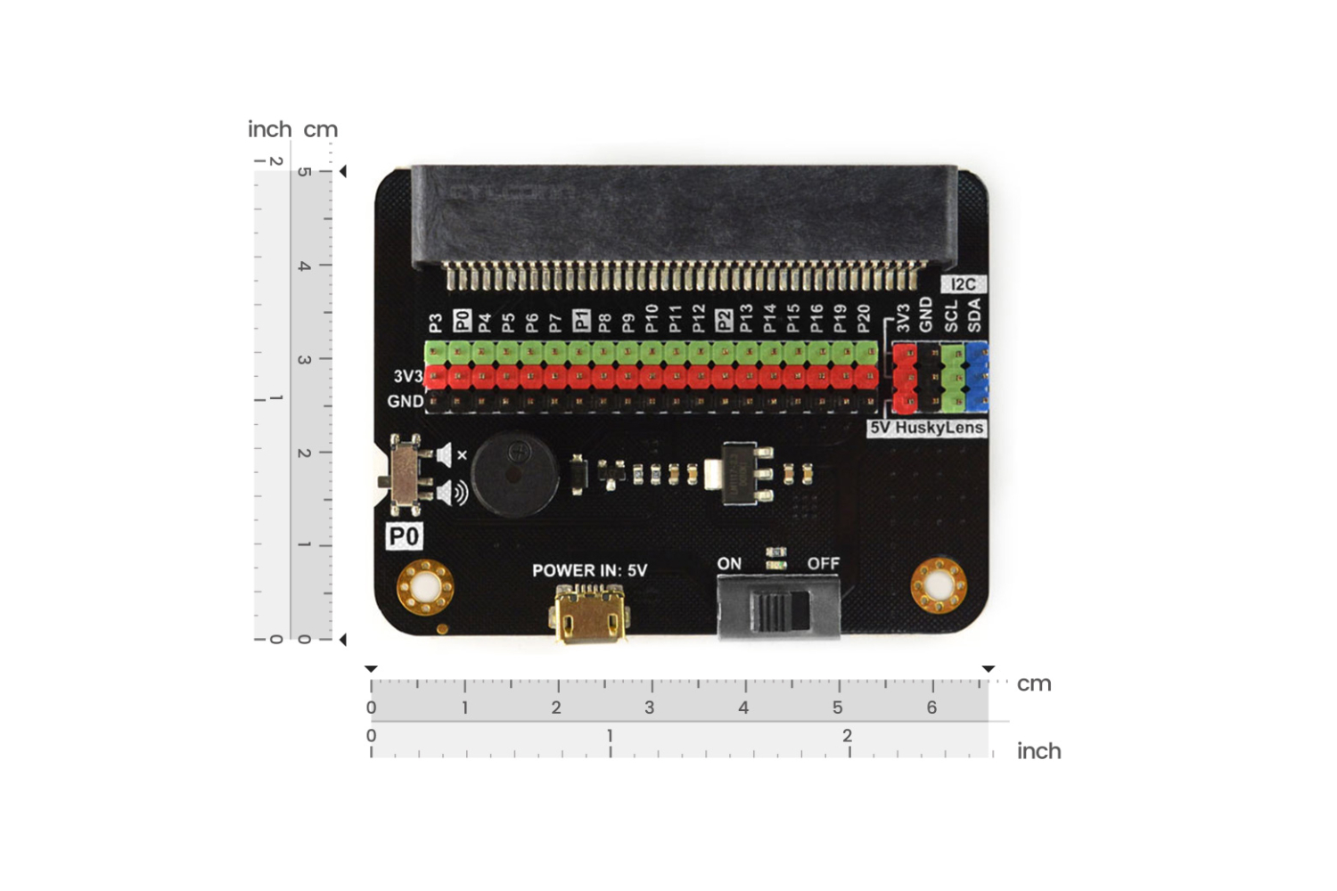 This IO Extender is an easy-to-use and low-cost expansion board for micro:bit. It leads out all IO ports of micro:bit and has a specially-designed port for HuskyLens AI camera. This board can be used to provide stable 5V power supply for HuskyLens to make it run steadily in all modes.