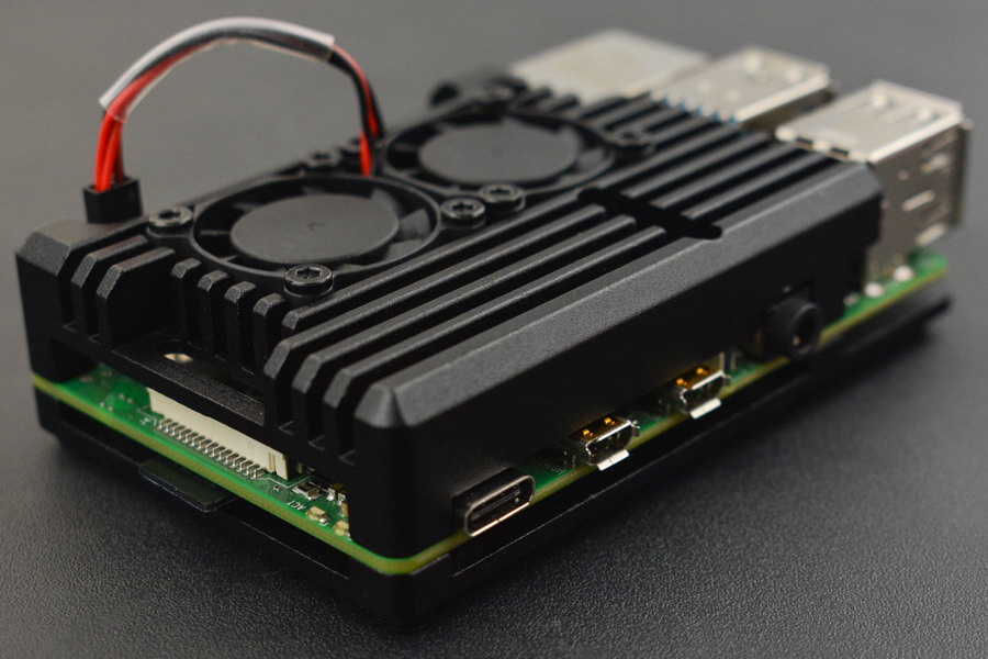 Raspberry Pi 4 Alloy case with dual fans.