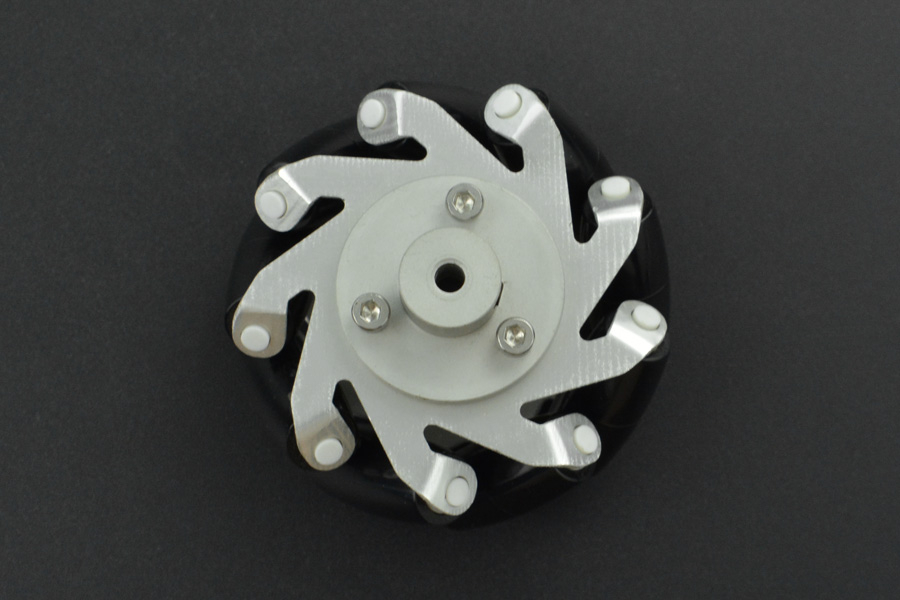 Different from the ordinary Mecanum wheel, this wheel, with better quality and texture, is equipped with metal exterior structure and has its own coupling matching with various motor shafts, which makes it quite easy to install. This Mecanum wheel has a diameter of 65mm and is composed of 9 small rollers that are made of plastic and coated with quality and high-friction silicone rubber, which are rugged and impact-resistant.