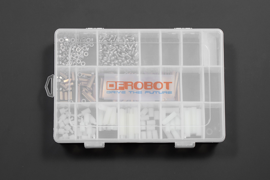 This mounting kit provides you different types of standoffs with screws and nuts which are most commonly used in our projects here at DFRobot. We use them to mount circuit boards and help build robots.
