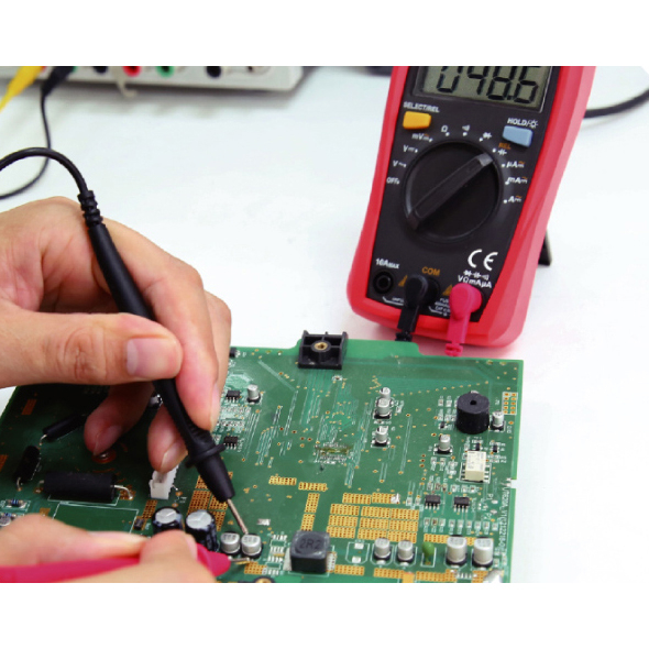 - measures V AC, V DC, mV DC/AC, µA DC /AC, mA DC/AC, A DC/AC, resistance, capacitance, throughput (buzzer), semiconductor transitions (diodes)
