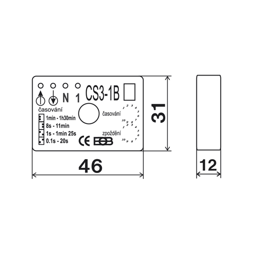The CS3-2 provides delayed deactivation of the regulated appliance. It is suitable for activating both resistive and inductive loads. The light is switched on upon the closing of the switch contacts. The programmed time starts to count down upon opening the switch contacts. Glow tube indicators can be connected to the control buttons.